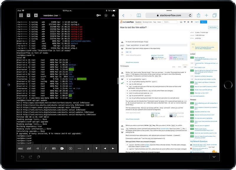 Todo lo anterior está pintado sobre dos monitores. Como decía es un flujo de trabajo bastante típico y seguro que estaré reproduciendo el día a día de un amplio porcentaje de desarrolladores web. Pues a continuación el intento de trasladar esto al iPad.