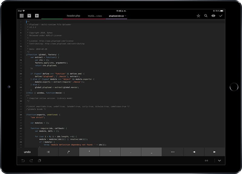 Por tanto para sesiones de desarrollo cortas, como ajustes puntuales, Coda en el iPad cumple su función de manera satisfactoria. Pero para sesiones largas y grandes en número de líneas el iPad no suplirá nunca un equipo de sobremesa o portátil. Y el problema no es el hardware ni la aplicación. Coda es una grandísima aplicación que intenta hacerte olvidar que estás en un iPad y casi lo consigue, en este punto es excelente el trabajo realizado por el equipo de Panic. Pero iOS 11 sigue siendo lo que es, un sistema operativo orientado a los dispositivos móviles.