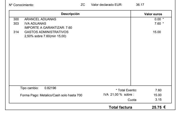 La sorpresa que sí esperaba, eran las aduanas, 7,6€. Podré estar más o menos de acuerdo en el importe y en la ética de este pago, pero así está establecido por mi país y son las normas. Si compro fuera de Europa y luego lo importo, la tienda está obligada a declarar el valor del producto y la empresa de transporte está obligada a realizar los trámites de la aduana. Repito, podré estar más o menos de acuerdo, pero son lentejas.