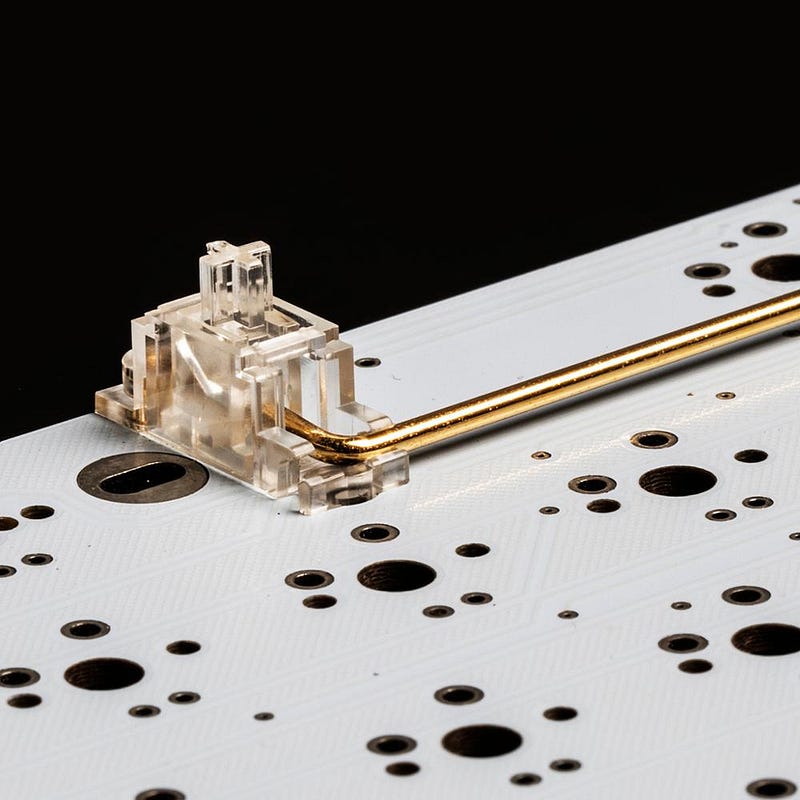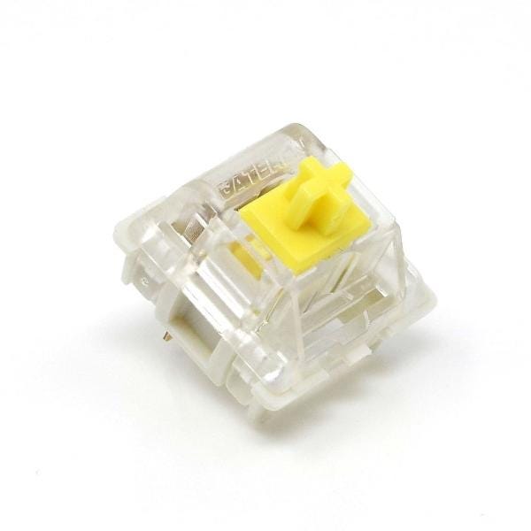 Los elegidos han sido unos Gateron Yellow. Unos switches clones de los Cherry MX de toda la vida y para algunos mejores que estos. Son lineales de 50g de actuación y de 62g para llegar al fondo. Están a medio camino entre los red (blandos para jugar) y los black (más duros). Son unos switches de batalla, es decir, no llegan al nivel de unos Tealios pero mejores que unos Outemu e incluso algunos Cherry como dije antes.