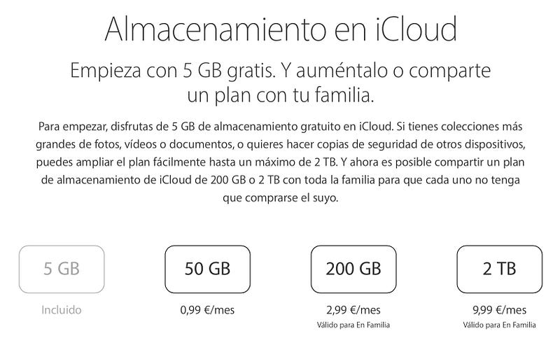 iCloud es un servicio que funciona como un reloj suizo en todos los dispositivos que uso en mi día a día, además los 5 GB que Apple ofrece sin coste son insuficientes. Por lo tanto los 99 céntimos mensuales para llegar a 45 GB más no son un problema para mi.