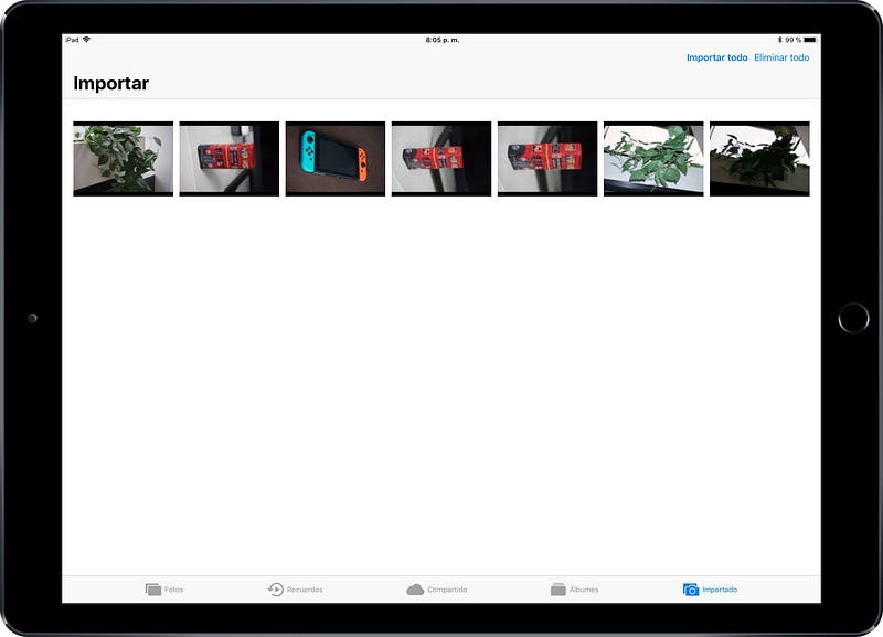 Importando las fotografías al iPad desde la cámara mediante la propia cámara