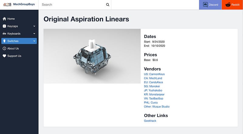 Para mi la mejor es MechGroupBuys por la manera en la que ordena su contenido a través del menú lateral, lo divide en keycaps, switches y keyboards, siendo esta última categoría un cajón de sastre donde pueden encontrarse cajas o teclados completos.